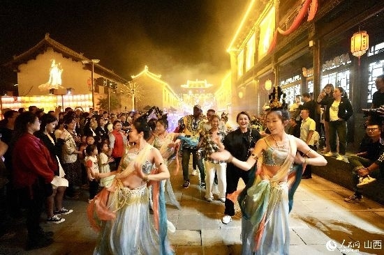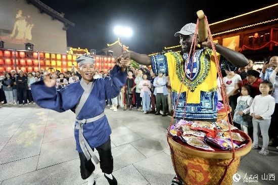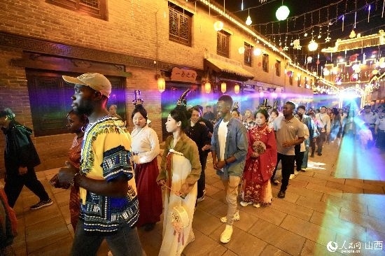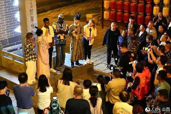 眼花繚亂的民俗表演,沉浸式的古城巡游,絢爛的城樓燈光秀,陶醉的狂歡……9月15日夜晚,在即將結(jié)束山西之行的前夜,2023“漢字緣”國際故事大會決賽的選手們夜游山西省晉城市陽城縣郭峪古城,于燈火闌珊處感受古城中的人間煙火。(人民網(wǎng) 盧鵬宇攝)