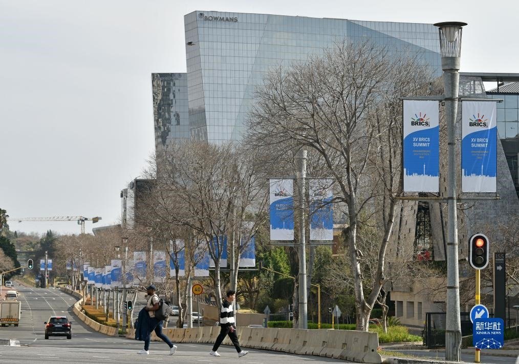 這是8月17日在南非約翰內(nèi)斯堡拍攝的金磚峰會(huì)條幅。新華社記者 陳誠(chéng) 攝