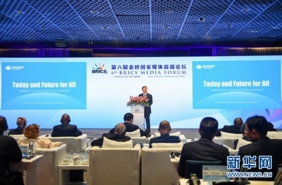8月19日,國家能源集團(tuán)董事王敏在第六屆金磚國家媒體高端論壇智庫報(bào)告發(fā)布暨研討會(huì)上進(jìn)行主旨發(fā)言。新華社記者 李亞輝 攝