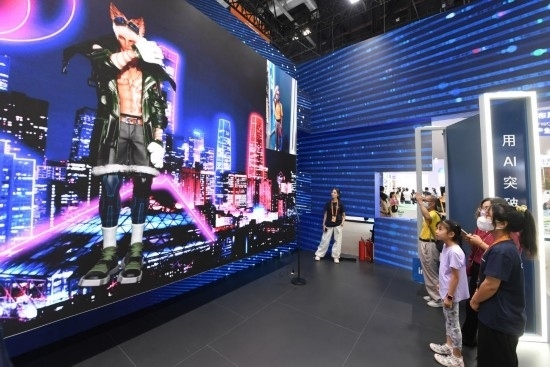 9月3日,一名參觀者在首鋼園中國移動(dòng)展臺(tái)體驗(yàn)基于AR/VR特效的敦煌導(dǎo)覽,沉浸式感受敦煌壁畫的魅力。新華社記者 李鑫 攝