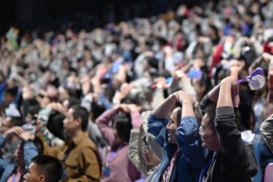 10月8日,觀眾在閉幕式上。當(dāng)日,杭州第19屆亞洲運(yùn)動會閉幕式在杭州奧體中心體育場舉行。(新華社記者陳鐘昊攝)