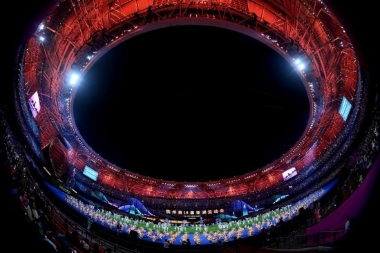 10月8日,演員在閉幕式上表演。當(dāng)日,杭州第19屆亞洲運(yùn)動會閉幕式在杭州奧體中心體育場舉行。(新華社記者黃宗治攝)