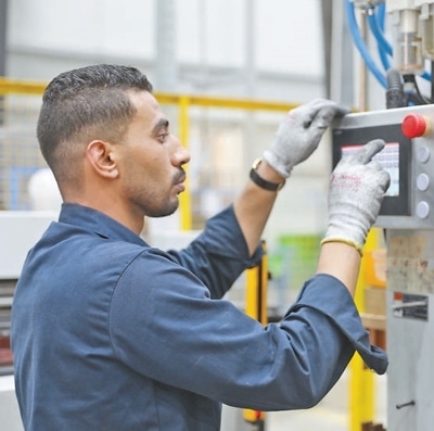 在中?!ぬ┻_(dá)蘇伊士經(jīng)貿(mào)合作區(qū)內(nèi),當(dāng)?shù)毓と嗽诓僮髟O(shè)備。本報(bào)記者 張志文攝