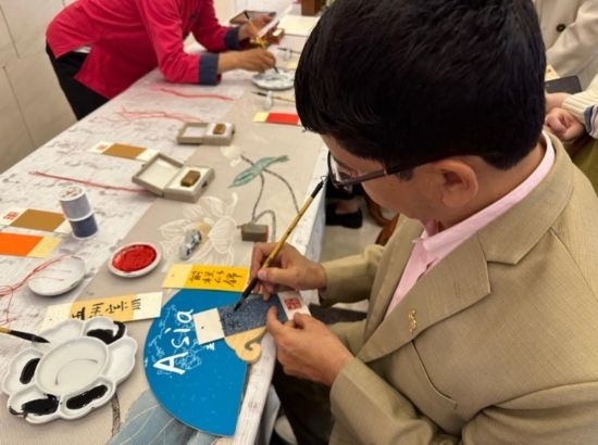 嘉賓體驗中國書法書寫過程 (新華社記者王艷剛攝)