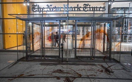 另據(jù)《以色列時(shí)報(bào)》報(bào)道,還有示威者在《紐約時(shí)報(bào)》總部大樓外集會并在大樓入口處潑上紅色顏料,這些示威者認(rèn)為《紐約時(shí)報(bào)》關(guān)于巴以新一輪沖突的報(bào)道偏袒以色列。