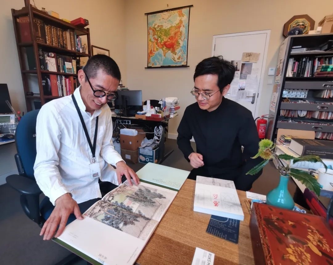 2023年9月,黃曉(右)與荷蘭國家博物館王靜靈研究員(左)交流,后者曾策劃2013年柏林的止園圖展。
