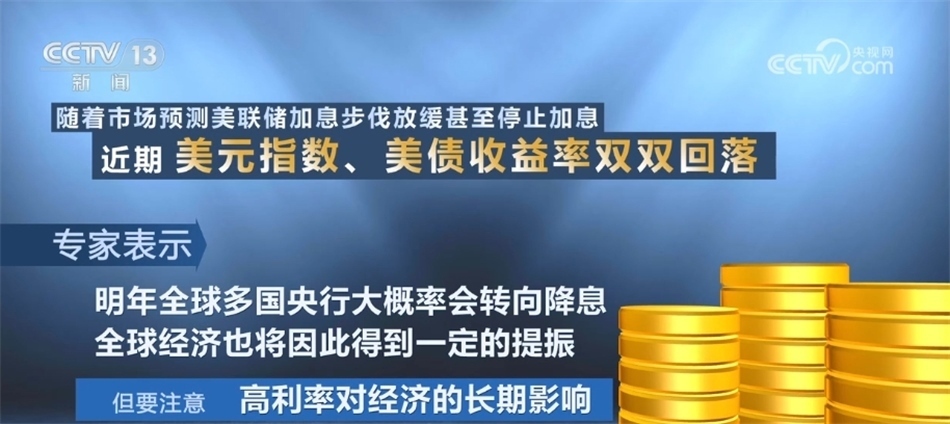 隨著市場預(yù)測美聯(lián)儲加息步伐放緩甚至停止加息,近期,美元指數(shù)、美債收益率雙雙回落,專家表示,明年全球多國央行大概率會轉(zhuǎn)向降息,全球經(jīng)濟(jì)也將因此得到一定的提振。但是,要注意的是,高利率對經(jīng)濟(jì)的長期影響。在國際貨幣基金組織(IMF)此前發(fā)布的《世界經(jīng)濟(jì)展望》中預(yù)計(jì),2024年全球經(jīng)濟(jì)增速為2.9%,較2023年有所下降。