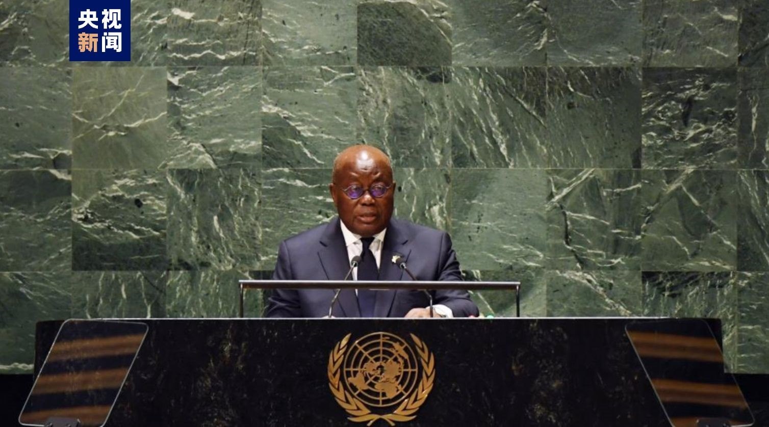 △加納總統(tǒng)阿庫(kù)福-阿多在聯(lián)大發(fā)言