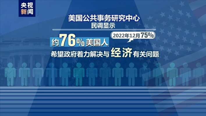 民調顯示,約76%的美國人希望政府著力解決與經濟有關的問題,與2022年12月75%的占比相差無幾。約85%的共和黨人和65%的民主黨人把經濟列為最優(yōu)先事項。民調還顯示,僅有5%的美國人“極其”或“非?!毙湃伟莸钦?。
