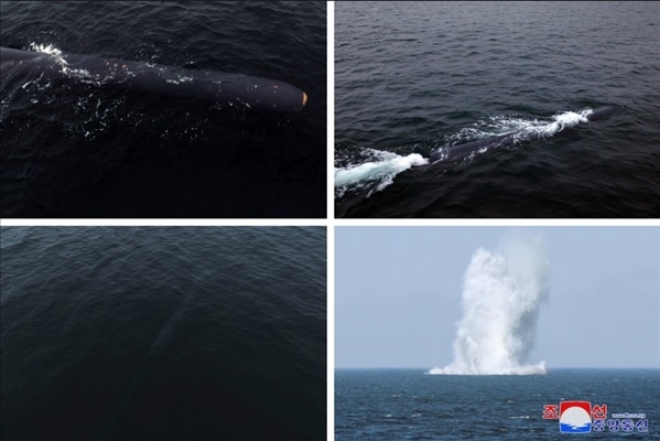 去年3月,朝鮮進(jìn)行了一系列軍事訓(xùn)練活動,包括新型水下攻擊武器系統(tǒng)試驗(yàn),其中,“海嘯”的核無人潛水攻擊艇首次亮相。試驗(yàn)在朝鮮咸鏡南道利原郡海岸進(jìn)行,在80米至150米深度潛航了約59小時(shí),最后到達(dá)假想敵人港口的洪原灣水域目標(biāo)點(diǎn)爆炸。一個(gè)月后朝鮮公開了“海嘯-2”型核無人潛水攻擊艇,朝方稱,該艇進(jìn)行了71小時(shí)、1000千米的潛航試驗(yàn),驗(yàn)證了潛水式戰(zhàn)略武器系統(tǒng)的可靠性和致命打擊能力。