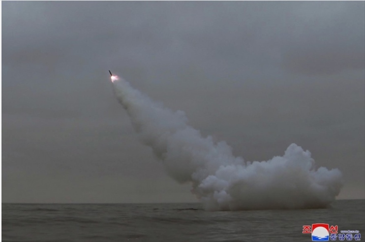 朝鮮公開潛射戰(zhàn)略巡航導(dǎo)彈試射照片。