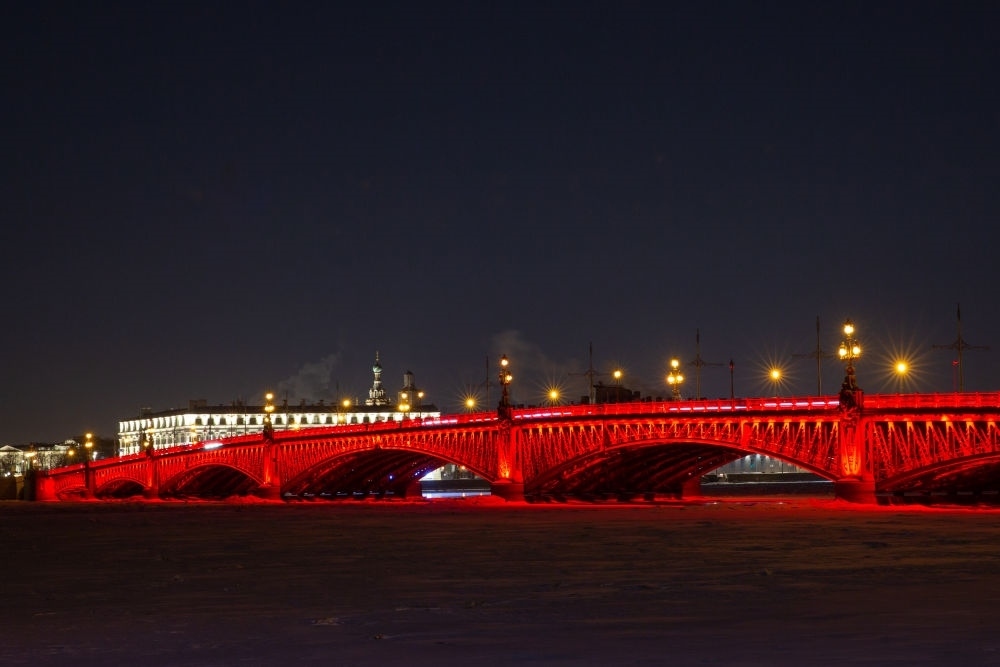 2月9日,俄羅斯圣彼得堡市中心的圣三一橋亮起“中國(guó)紅”,慶祝中國(guó)龍年春節(jié)。新華社發(fā)(莫京娜攝)