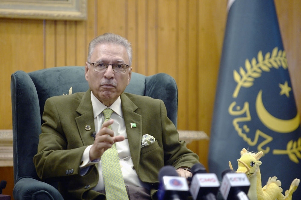 2月7日,在巴基斯坦伊斯蘭堡,巴基斯坦總統(tǒng)阿爾維接受新華社和其他中國(guó)媒體聯(lián)合采訪。新華社發(fā)(艾哈邁德·卡邁勒攝)