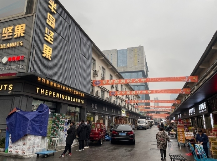 這是湖南長沙高橋大市場堅(jiān)果經(jīng)銷商李海麗在整理貨物。新華社記者 余春生 攝