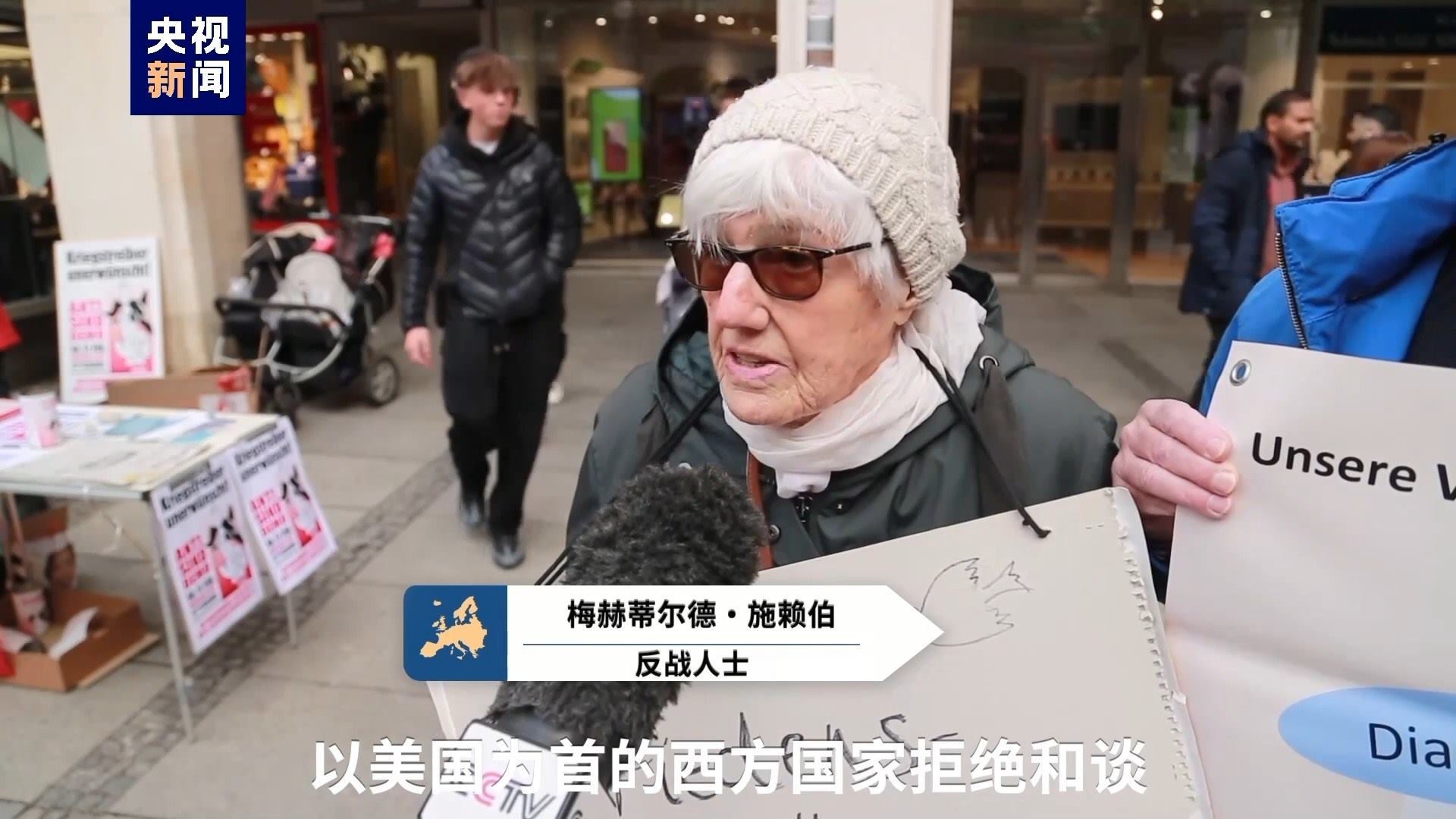 反戰(zhàn)人士 梅赫蒂爾德·施賴伯:以美國為首的西方國家拒絕和談。德國國防部長(zhǎng)說,我們必須做好戰(zhàn)爭(zhēng)準(zhǔn)備,運(yùn)送武器并且提高武器生產(chǎn)能力。這非常可怕。