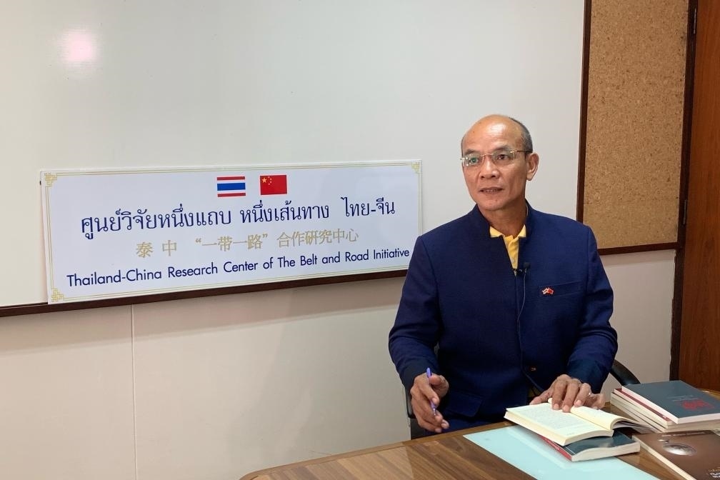 2019年4月17日,泰國國家研究院泰中戰(zhàn)略研究中心主任蘇拉西·塔納唐在曼谷接受新華社記者專訪。新華社記者楊舟攝