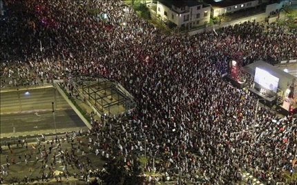 當(dāng)?shù)貢r(shí)間6日,以色列特拉維夫爆發(fā)抗議活動(dòng),呼吁現(xiàn)任政府下臺(tái)且盡快采取措施帶回人質(zhì) 圖源:《以色列時(shí)報(bào)》