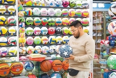 浙江省義烏國(guó)際商貿(mào)城,來(lái)自厄瓜多爾的外商在選購(gòu)球類(lèi)。時(shí)寬兵攝(人民視覺(jué))