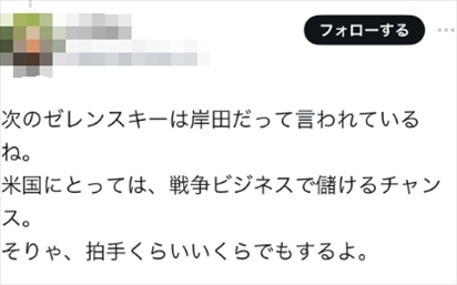 還有人說(shuō)道:“有人說(shuō)下一個(gè)澤連斯基是岸田。對(duì)美國(guó)來(lái)說(shuō),戰(zhàn)爭(zhēng)是賺錢的時(shí)機(jī),掌聲還是會(huì)給你的?!?/p>