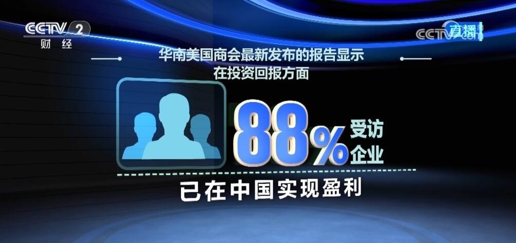 中國(guó)美國(guó)商會(huì)最新發(fā)布的調(diào)查報(bào)告顯示,有50%的受訪美國(guó)企業(yè)將中國(guó)列為全球首選或前三位投資目的地。華南美國(guó)商會(huì)的報(bào)告顯示,在投資回報(bào)方面,88%的受訪企業(yè)表示已在中國(guó)實(shí)現(xiàn)盈利,有超過(guò)50%的受訪企業(yè)認(rèn)為其在華總體投資回報(bào)率高于全球總體投資回報(bào)率。