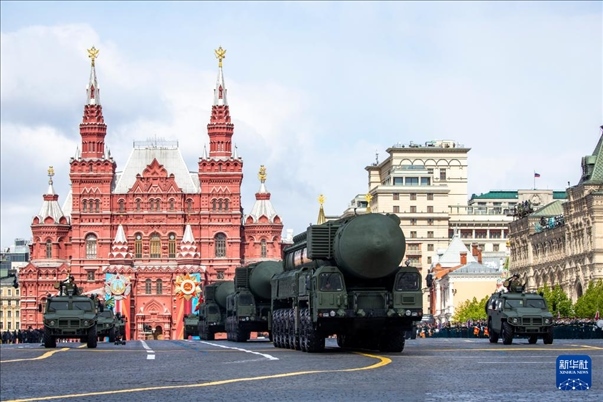5月9日,在俄羅斯首都莫斯科,“亞爾斯”導彈系統(tǒng)編隊駛過紅場。新華社記者 曹陽 攝