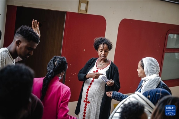 ?2023年9月9日,工作人員在埃塞俄比亞首都亞的斯亞貝巴拉布火車站為乘客檢票。新華社記者 王冠森 攝