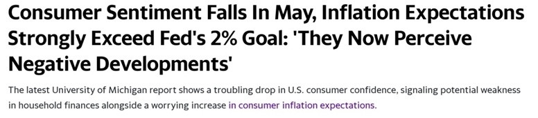 美國密歇根大學(xué)日前公布的數(shù)據(jù)顯示,由于通脹預(yù)期惡化,一項關(guān)鍵美國消費者信心指數(shù),跌至2023年11月以來的最低水平。