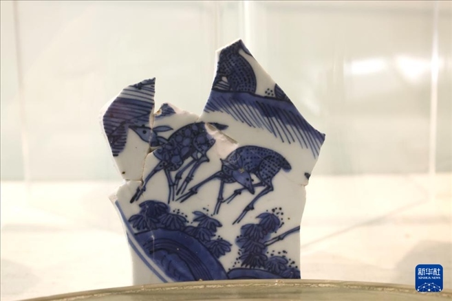 這是5月26日在位于巴林麥納麥的巴林國(guó)家博物館拍攝的中國(guó)青花瓷碎片。 新華社記者 王海洲 攝