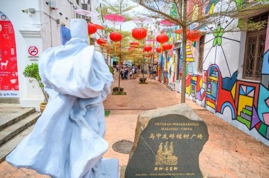 這是2019年12月20日在馬來西亞馬六甲拍攝的鄭和·朵云軒(馬六甲)藝術館外的馬中友好植樹廣場。600多年前,鄭和五次駐節(jié)馬六甲,由他帶到這片土地上的中華文化如今已深深融入當?shù)囟嘣幕?。新華社記者朱煒攝