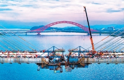 近日,浙江寧波舟山港六橫公路大橋一期項(xiàng)目梅山水道橋即將合龍。該大橋建成后,可實(shí)現(xiàn)六橫島、佛渡島、梅山島三島港區(qū)、產(chǎn)業(yè)聯(lián)動(dòng)發(fā)展,推動(dòng)甬舟一體化駛?cè)搿翱旌降馈?。胡學(xué)軍攝(人民視覺)