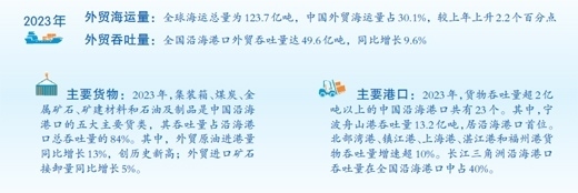 在全球范圍內(nèi),超八成的國(guó)際貿(mào)易通過海上運(yùn)輸實(shí)現(xiàn),海運(yùn)是中國(guó)外貿(mào)的“大動(dòng)脈”?!吨袊?guó)港口運(yùn)行分析報(bào)告(2024)》(以下簡(jiǎn)稱《報(bào)告》)顯示,2023年,在外貿(mào)需求回暖、全球貿(mào)易體系重塑等因素推動(dòng)下,中國(guó)外貿(mào)海運(yùn)規(guī)模增長(zhǎng)較快,全國(guó)沿海港口外貿(mào)吞吐量達(dá)49.6億噸,同比增長(zhǎng)9.6%。