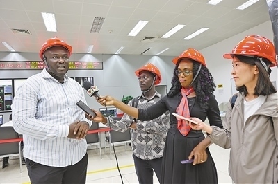 中加記者在深能安所固電力(加納)有限公司中控室采訪加方工程師。本報記者 孟祥麟攝