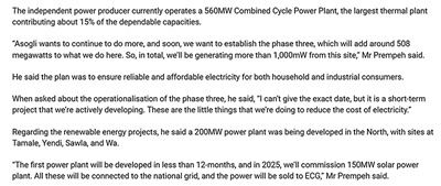 聯(lián)合采訪期間,人民日報和加納通訊社、加納廣播公司等加主流媒體共同采訪深能安所固電廠和中國港灣工程有限責任公司承建的特馬新集裝箱碼頭等中加互利共贏合作項目,共同呈現(xiàn)中非合作豐碩成果,講好新時代中非合作故事。