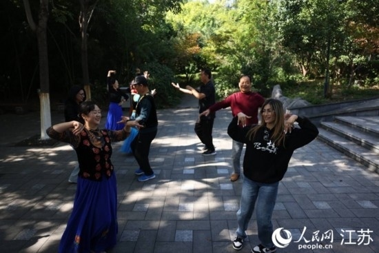 拉加媒體記者與徐州市民共舞。人民網 李昱辰攝