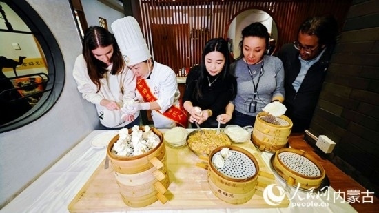 外媒記者體驗燒麥制作。人民網(wǎng)記者 張雪冬攝