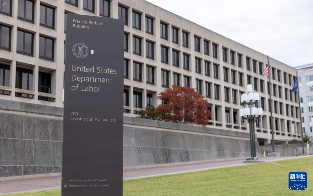 這是11月1日在美國華盛頓拍攝的勞工部大樓。