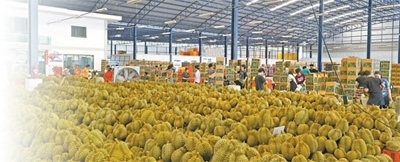 在位于泰國尖竹汶府的優(yōu)果東明水果廠,經(jīng)過分揀和清潔處理的榴蓮按品級(jí)分類整齊堆放、等待裝箱。本報(bào)記者 白元琪攝