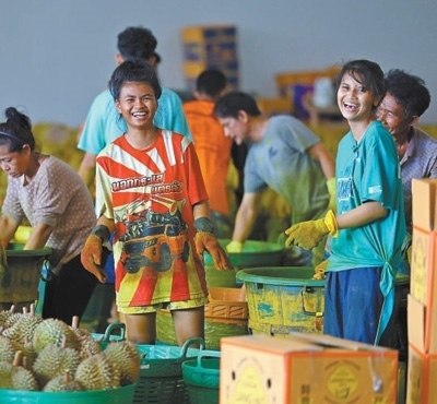 榴蓮是中國第一大水果進(jìn)口品類。據(jù)統(tǒng)計(jì),2023年中國進(jìn)口142.6萬噸鮮榴蓮,其中92.9萬噸來自泰國。中國市場的強(qiáng)勁需求,帶動(dòng)了泰國水果產(chǎn)業(yè)發(fā)展。泰國商業(yè)部數(shù)據(jù)顯示,2024年尖竹汶府的榴蓮產(chǎn)量預(yù)計(jì)突破56萬噸,同比增長超4.3%。同時(shí),山竹、龍宮果等熱帶水果的產(chǎn)量也迎來了快速增長?!拔彝扑]了不少親朋好友來水果加工廠上班,收入有保障,旺季的提成更是豐厚!”猜維開心地說。