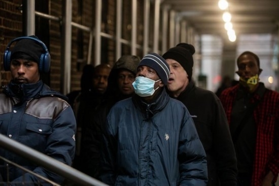 2023年12月24日,在美國紐約,民眾在“紐約公共食品儲藏室”排隊(duì)領(lǐng)取免費(fèi)食品。新華社發(fā)(郭克攝)