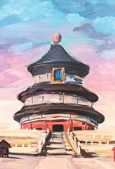 夕陽余暉中,新西蘭華裔青少年們在天壇祈年殿紅墻邊席地而坐,揮動畫筆,捕捉眼前美景。“夕陽下祈年殿更顯壯麗,我希望通過我的畫筆展現(xiàn)出它的雄偉。”參訪團學(xué)生秦曉寓說。