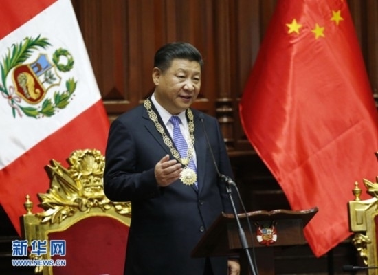 2016年11月21日,國(guó)家主席習(xí)近平在秘魯國(guó)會(huì)發(fā)表題為《同舟共濟(jì)、揚(yáng)帆遠(yuǎn)航,共創(chuàng)中拉關(guān)系美好未來(lái)》的重要演講。新華社記者 鞠 鵬攝