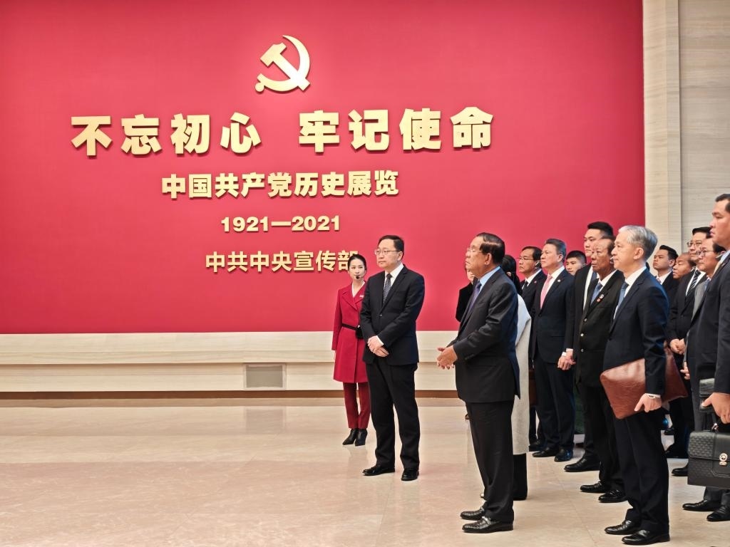 “了解研究歷史,對(duì)推進(jìn)實(shí)現(xiàn)國(guó)家富強(qiáng)、開(kāi)創(chuàng)人類美好未來(lái)具有重要意義?!?2月4日上午,正在對(duì)中國(guó)進(jìn)行正式友好訪問(wèn)的柬埔寨人民黨主席、參議院主席洪森專程來(lái)到中國(guó)共產(chǎn)黨歷史展覽館參觀。一張張歷史圖片、一件件文獻(xiàn)實(shí)物、一個(gè)個(gè)逼真場(chǎng)景……展廳內(nèi),洪森不時(shí)駐足,由衷贊嘆中國(guó)共產(chǎn)黨領(lǐng)導(dǎo)中國(guó)取得的發(fā)展成就。