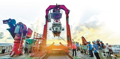 船時6時許(北京時間4時許),遠處天際依然泛著青灰色,母船“深海一號”船上已是一片繁忙景象。作業(yè)區(qū)天氣晴朗,潛航人員和技術保障團隊各司其職。一系列準備工作就緒后,“蛟龍”號艙蓋關閉,深海之旅即將開啟。