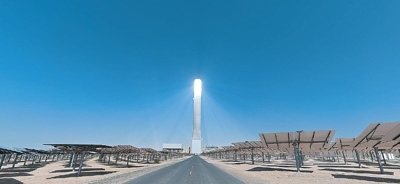 馬克圖姆太陽能公園四期光熱光伏綜合發(fā)電項目一景。
