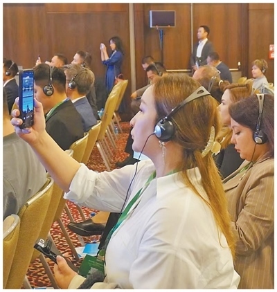 參加2025中國(guó)—中亞媒體合作論壇報(bào)道的中亞國(guó)家媒體記者正在拍攝視頻。