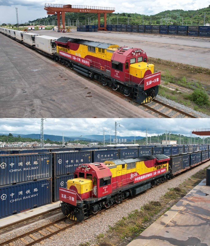 當(dāng)日,中老鐵路國際貨物列車(玉溪—萬象)實現(xiàn)雙向開行。中老鐵路自2021年12月開通以來,截至今年7月底,運輸貨物超6450萬噸,其中跨境貨物突破1490萬噸。