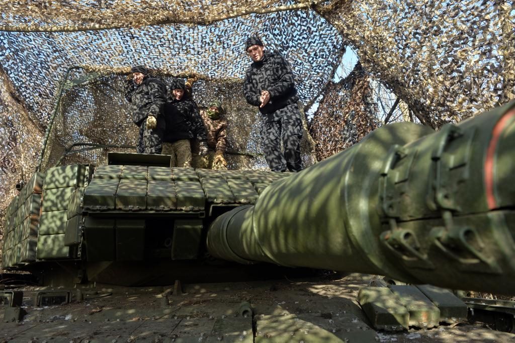 2月9日,烏軍第5獨(dú)立重型機(jī)械化旅第1坦克營士兵在檢查坦克。新華社發(fā)(彼得·德魯克攝)