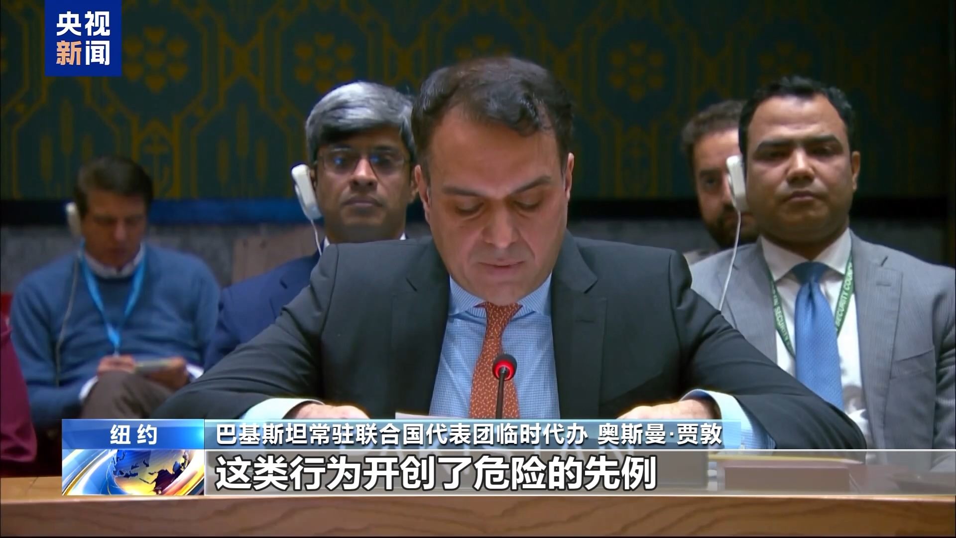 巴基斯坦常駐聯(lián)合國代表團(tuán)臨時(shí)代辦 奧斯曼·賈敦:這類行為開創(chuàng)了危險(xiǎn)的先例,對全球法律框架的根基構(gòu)成威脅。