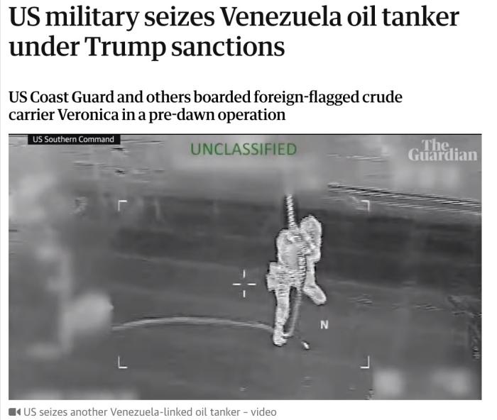 報道稱,這是自本月初美方對委內(nèi)瑞拉發(fā)動突然襲擊,強行控制委內(nèi)瑞拉總統(tǒng)馬杜羅夫婦以來扣押的第六艘油輪。