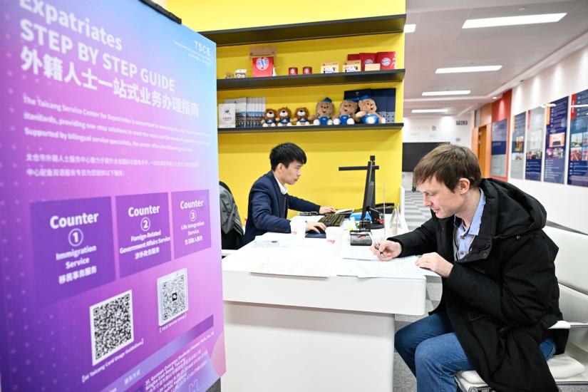 2月25日,在太倉(cāng)市外籍人士服務(wù)中心,一名德企員工在辦理業(yè)務(wù)。(圖片來(lái)源:新華社)